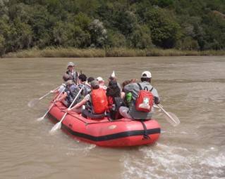 The final stage in the journey to Zingela is crossing the River Tugela; which was accomplished by dinghies.
